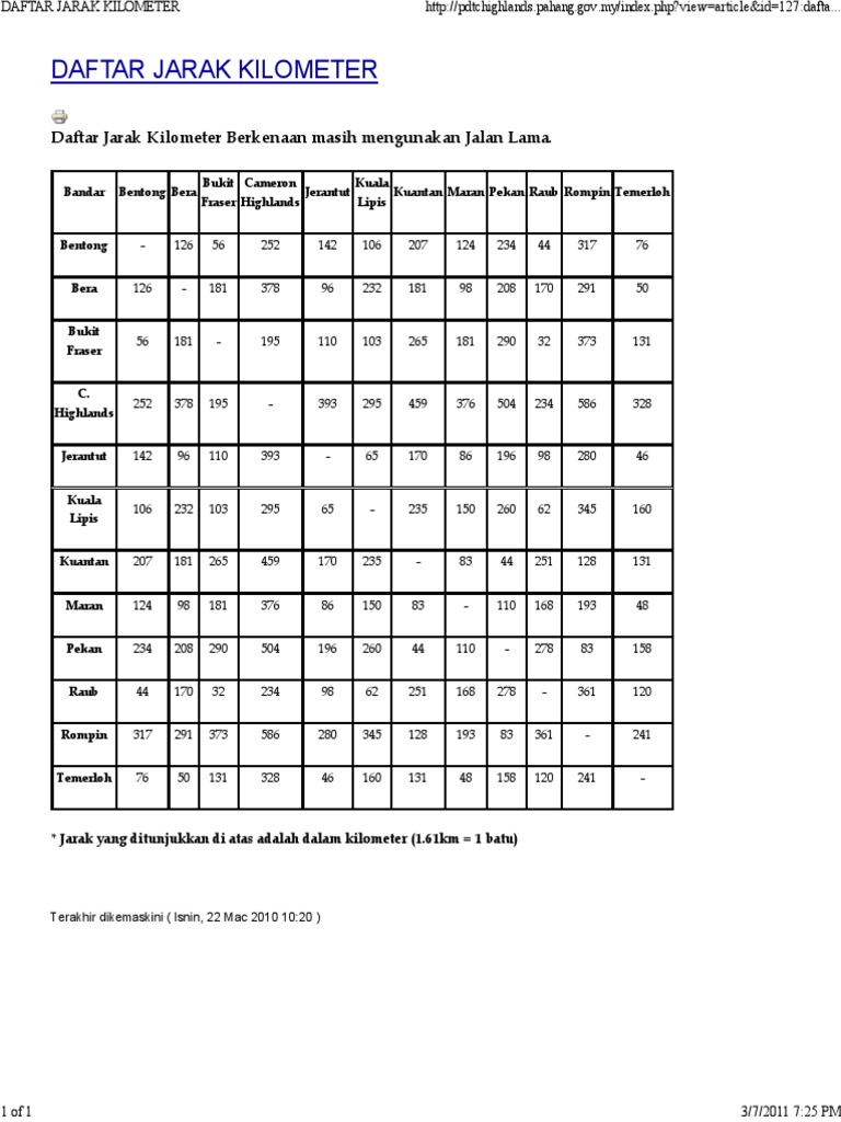 Daftar Jarak Destinasi Di Malaysia Pdf